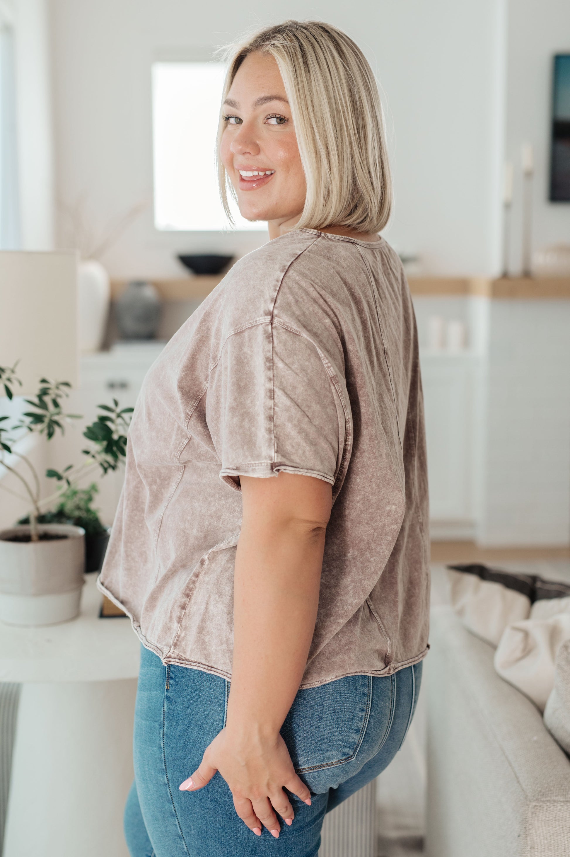 Soak up all the good vibes with our Here for the Vibes Mineral Wash Spliced Tee. It features a mineral washed v-neckline and dolman sleeve for a comfortable fit, complemented by contour seams, a boxy crop and raw rolled hem. Enjoy the feel-good vibes with this tee!