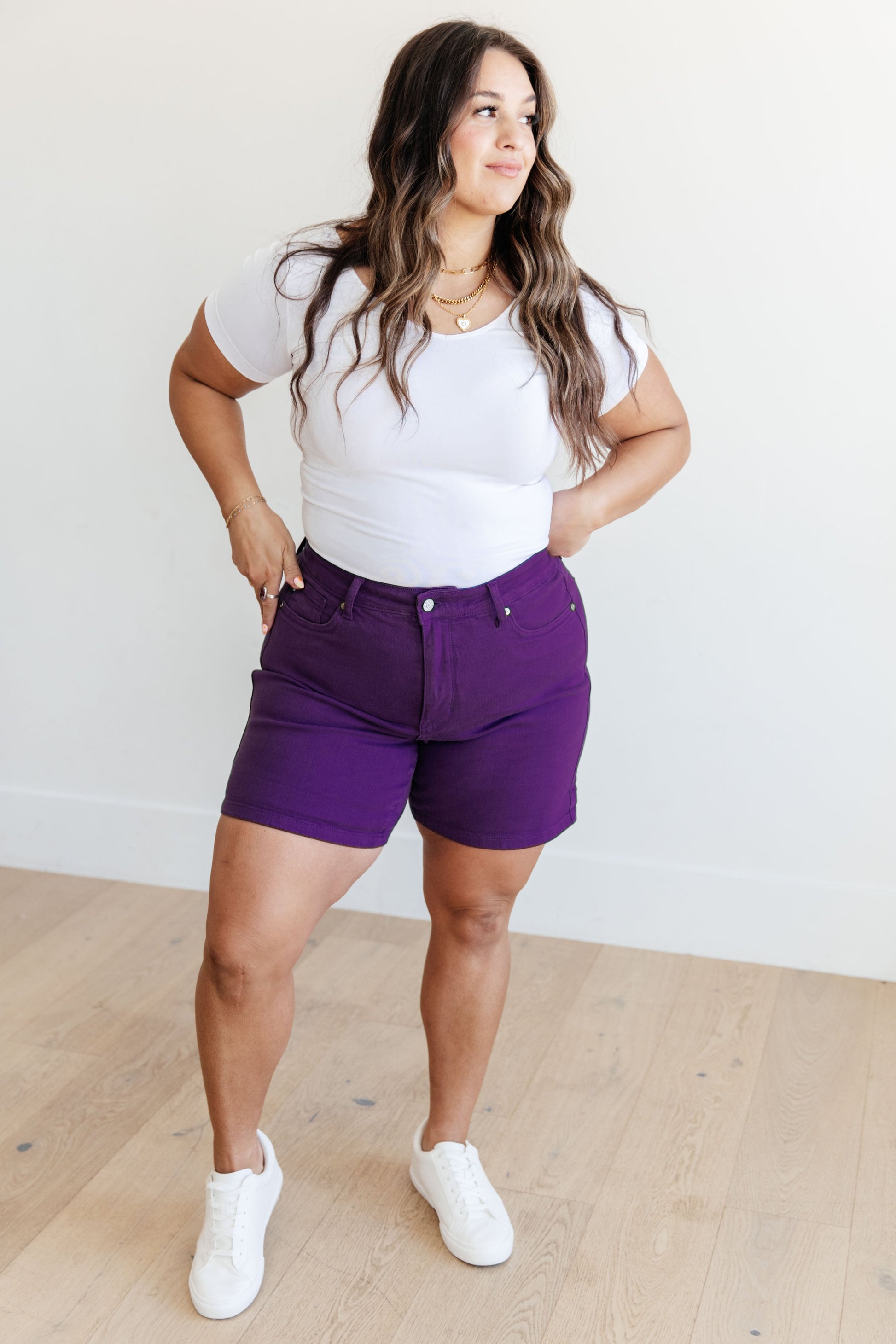 Jenna High Rise Control Top Cuffed Shorts in Purple